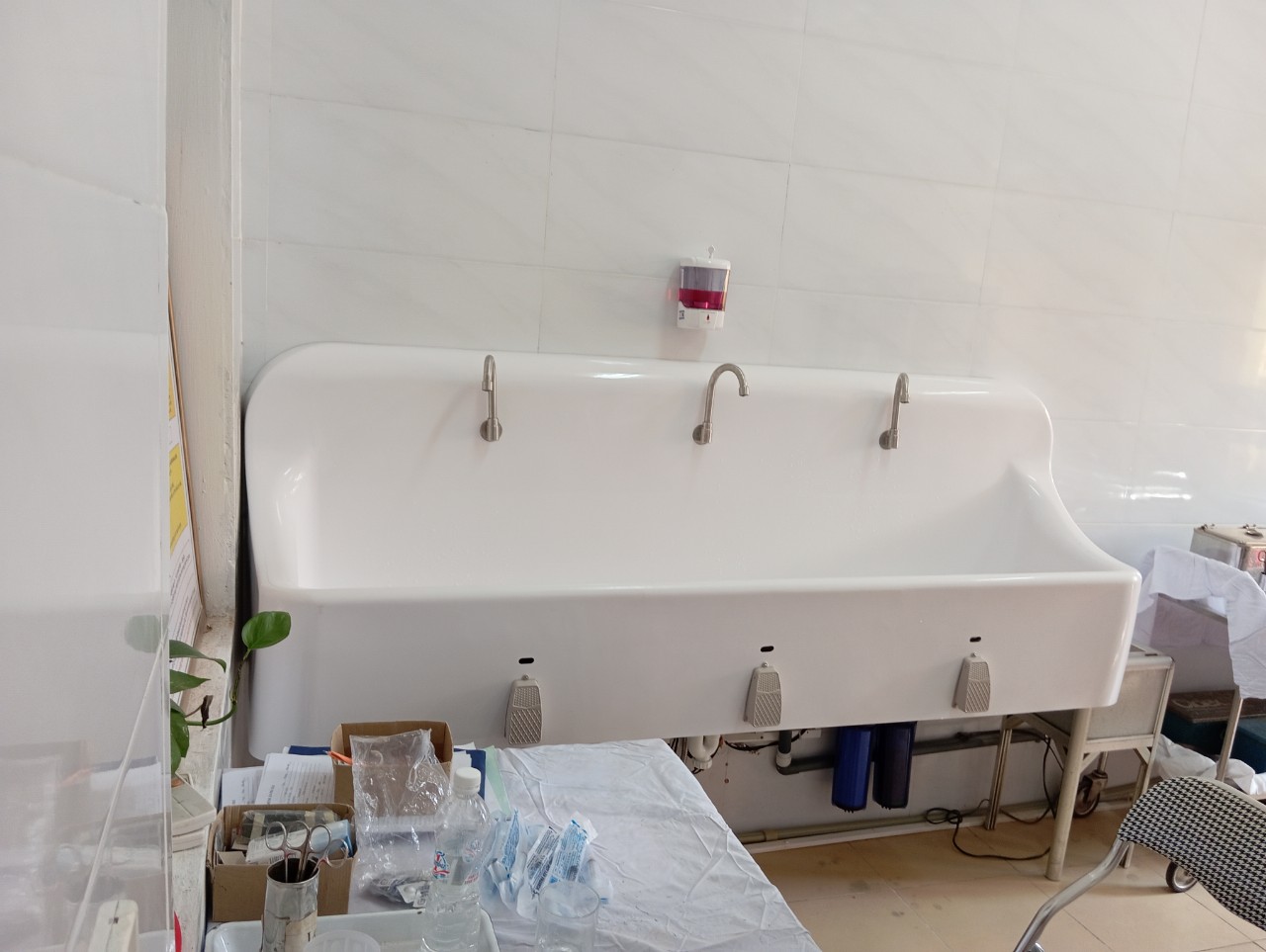 – Bồn rửa tay vô trùng với thiết kế màu trắng sáng sang trọng phù hợp với không gian bệnh viện.